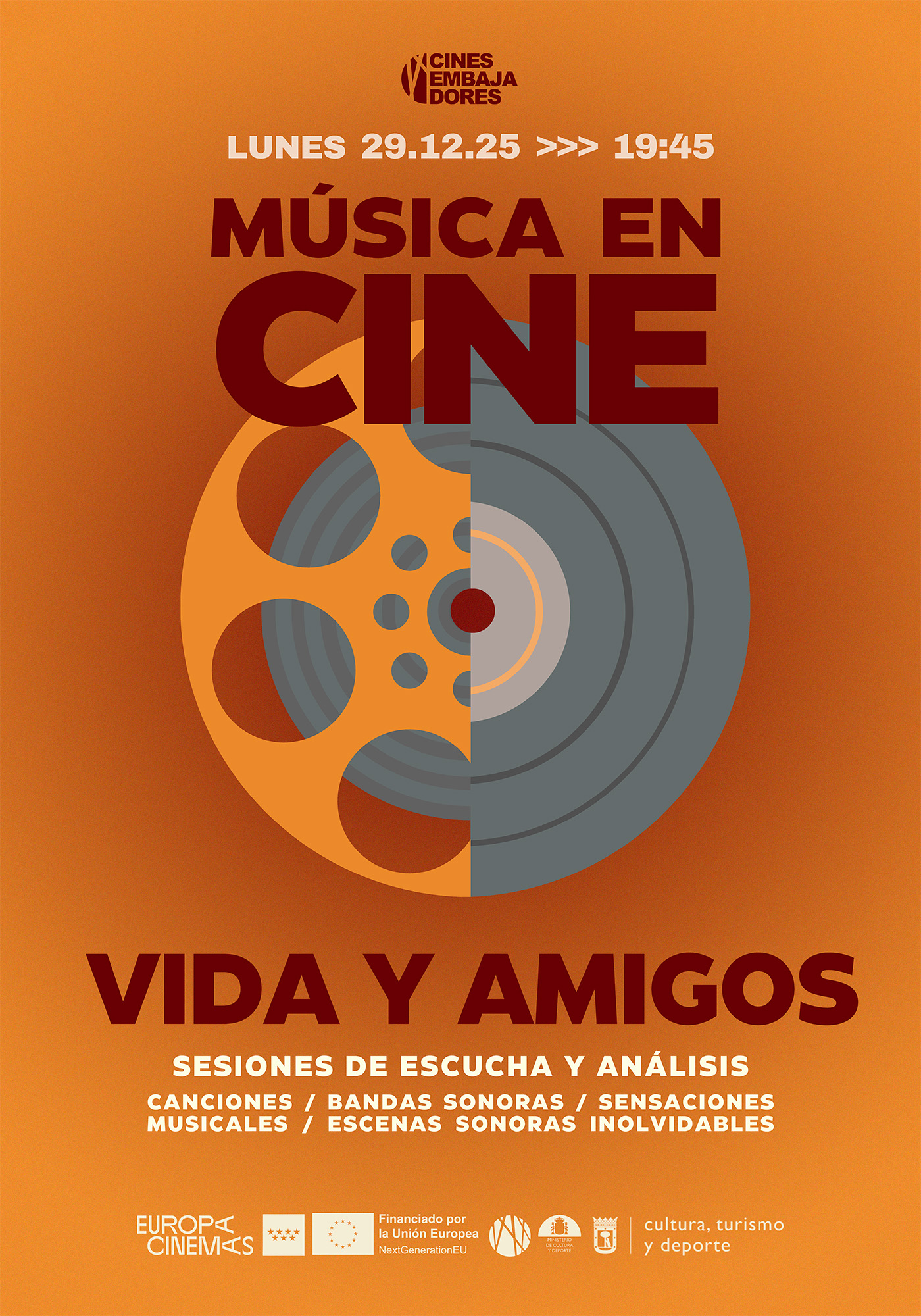 Sesiones de 2 horas de relax auditivo, saboreo musical cinéfilo y un poco de aprendizaje para compartir entre todos.. Análisis de bandas sonoras, canciones, música incidental y diegética, sensaciones musicales y escenas sonoras inolvidables.