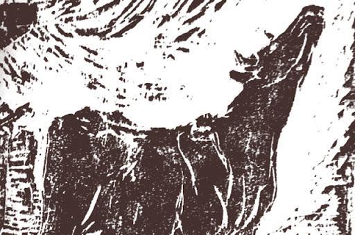 Vaca mugiendo entre ruinas